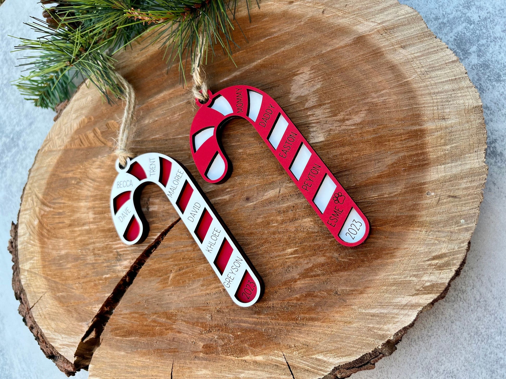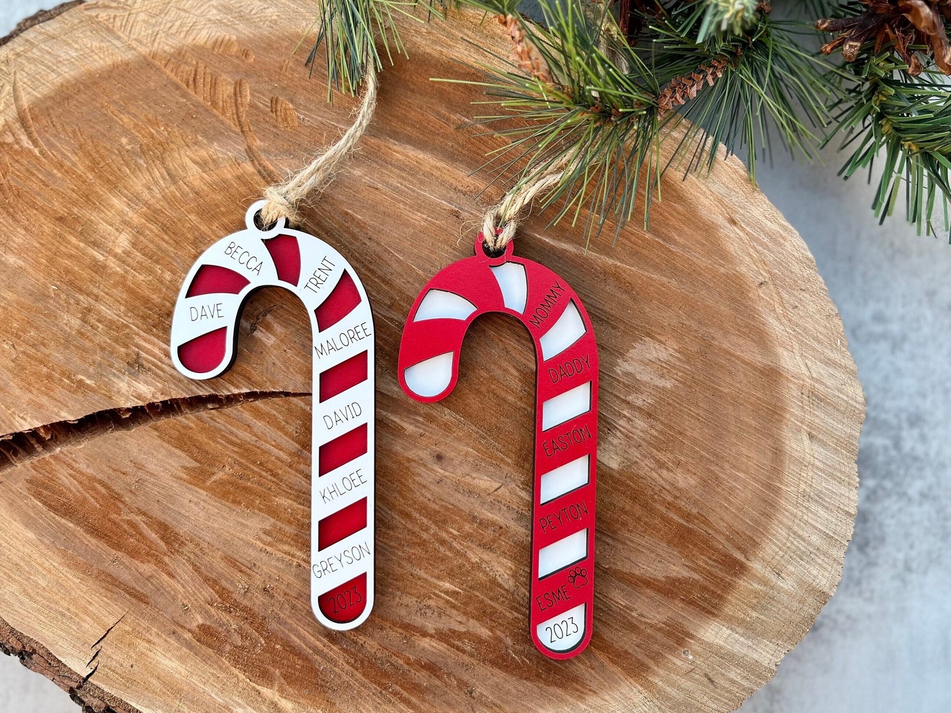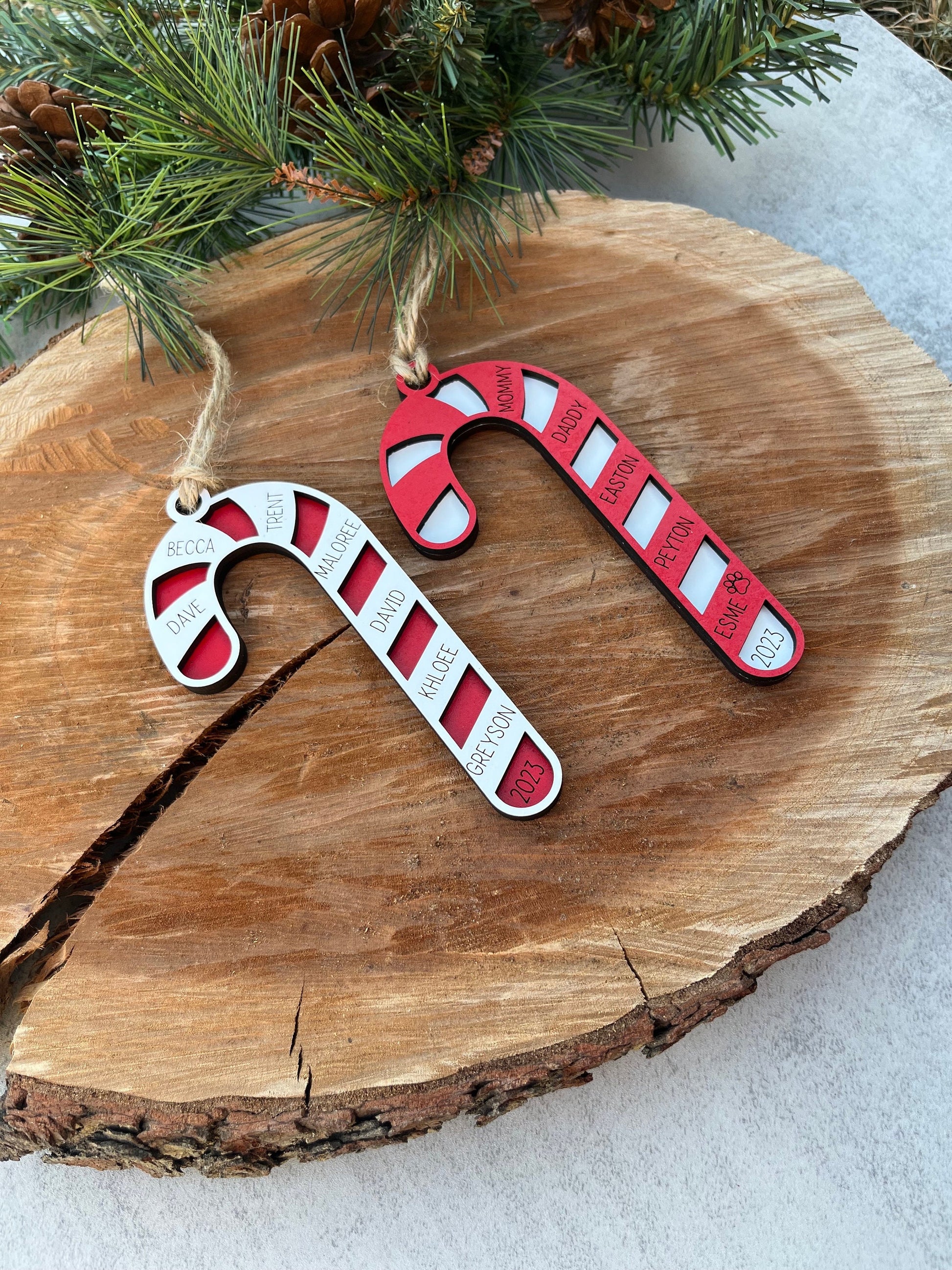 Personalized Candy Cane Christmas Name Ornament | Up to 7 Family Names