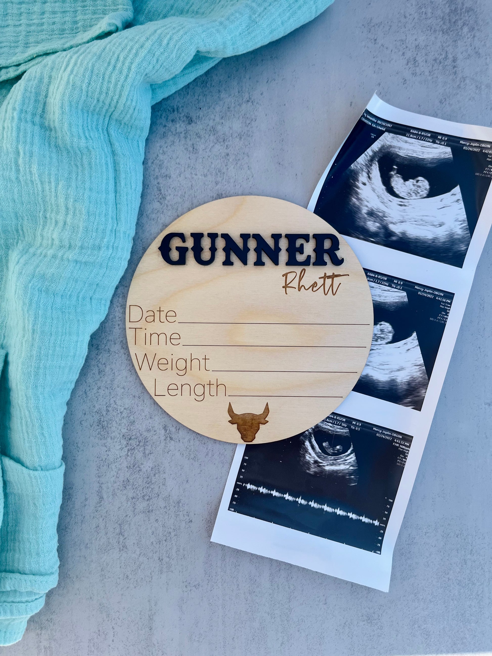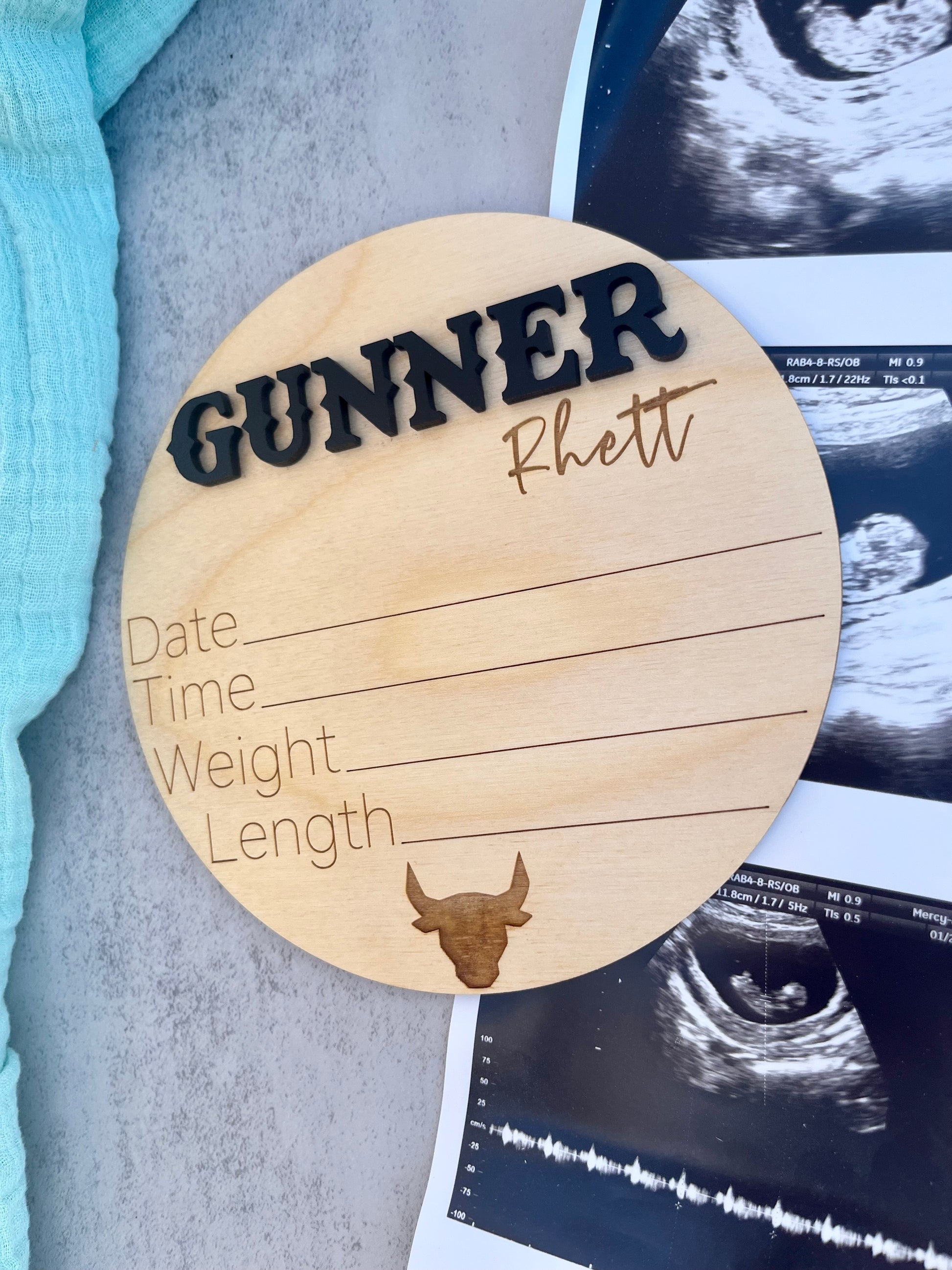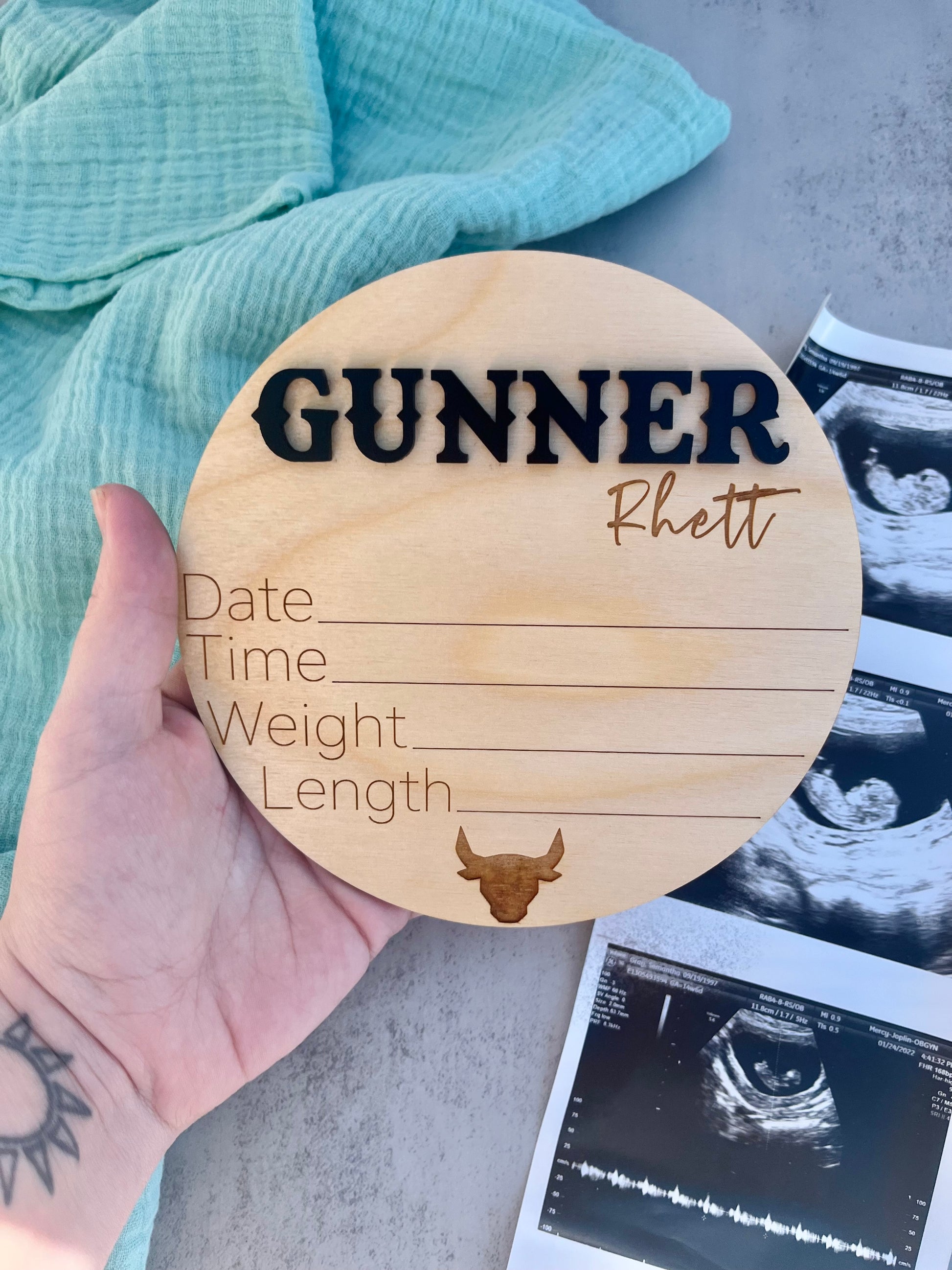Cow Head Birth Stat Sign | Western Birth Announcement