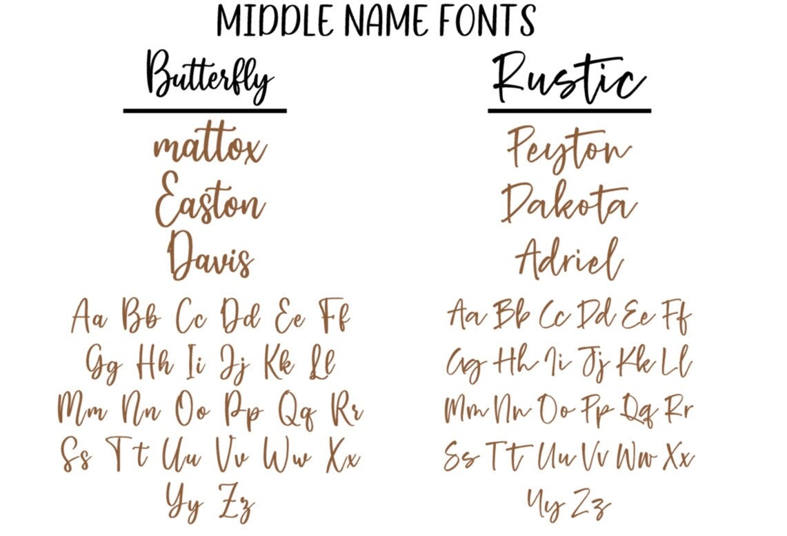 Please note that all names are different lengths and will need to be placed differently. Feel free to request a mock up with your order!