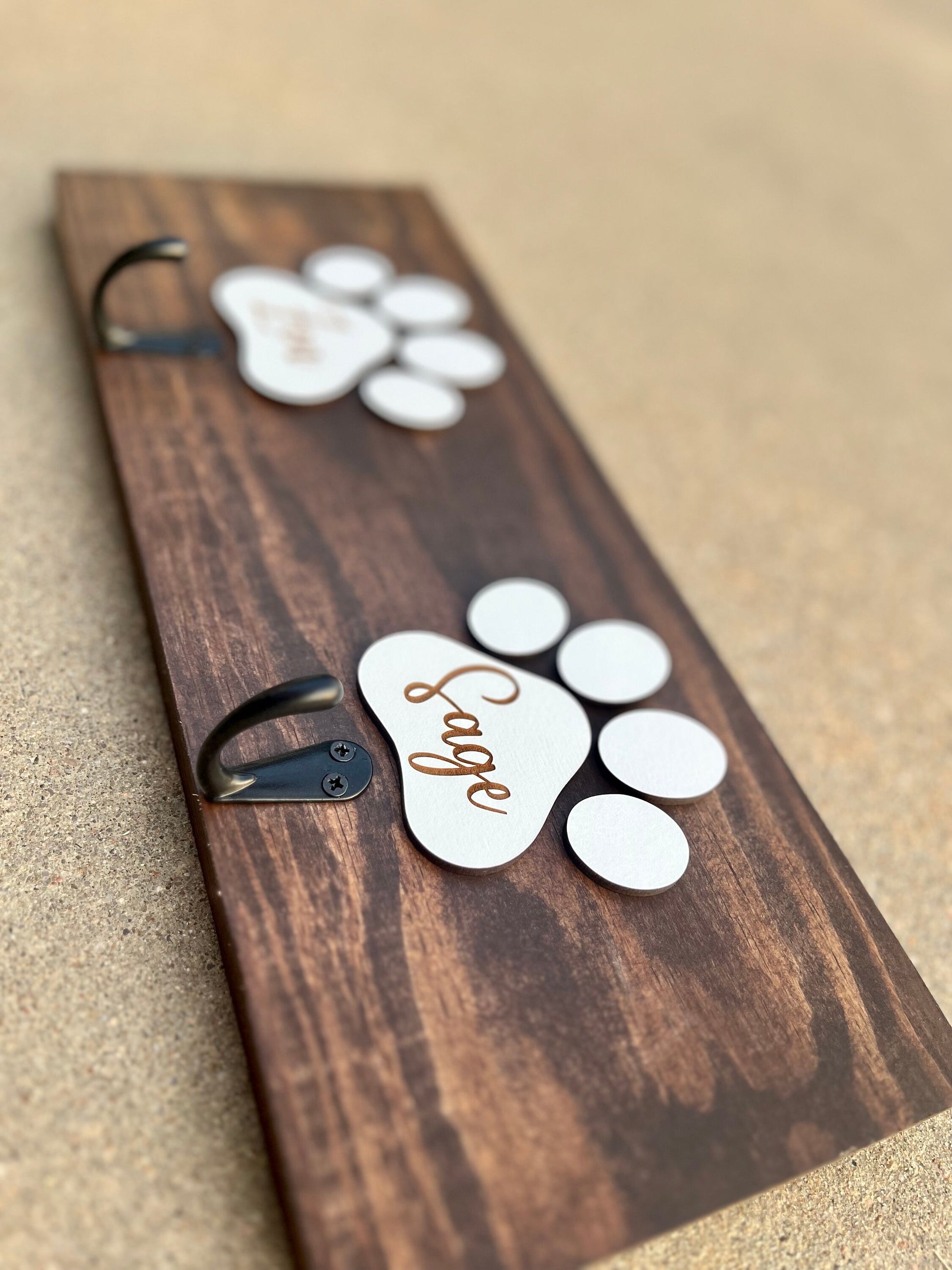 This cute, handmade wall-hung key and leash holder is the perfect addition to keep your things organized and easily accessible!