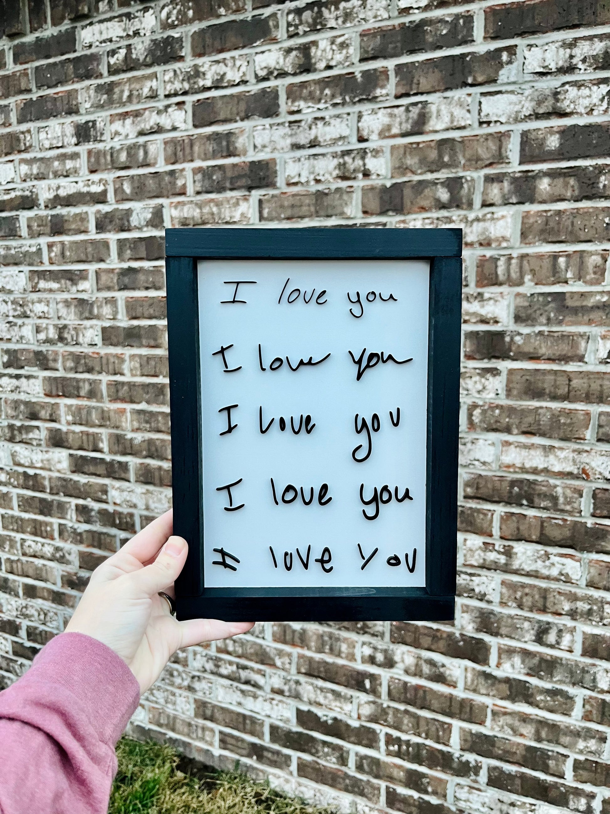 Preserve your loved ones' handwriting with our Handwriting Message Sign. This timeless keepsake allows you to choose any message, from "I love you" to hand-drawn hearts. Available in various sizes, it's the perfect way to remember and display special messages from your loved ones.