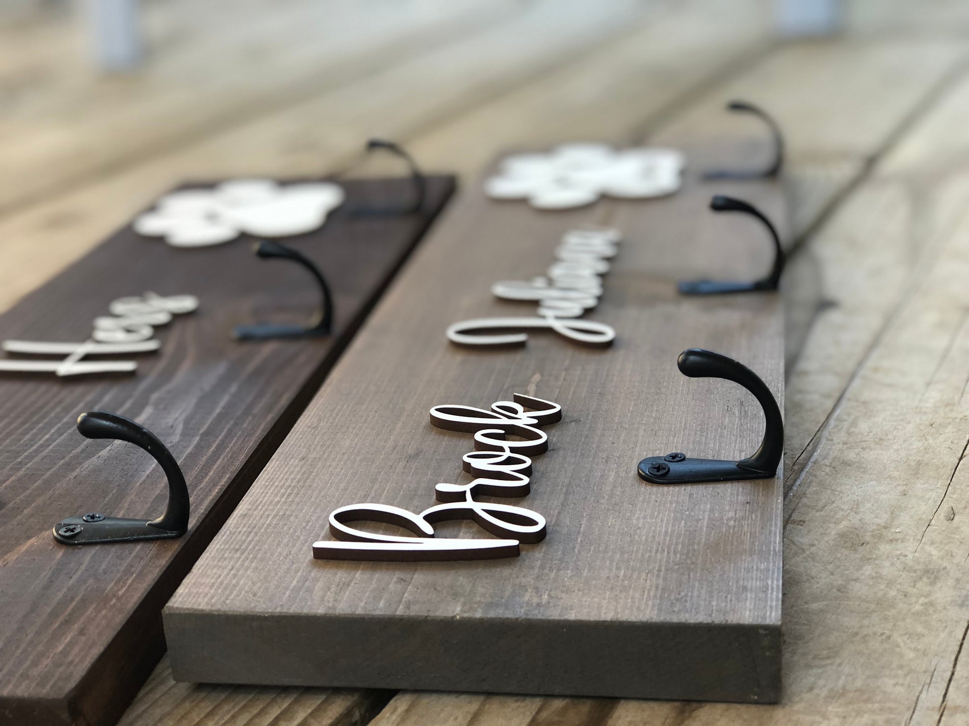 Colors, wood grains, and overall appearance may vary. These are only meant to hold lightweight items such as keys and leashes. We do not recommend hanging heavy items such as a purses.