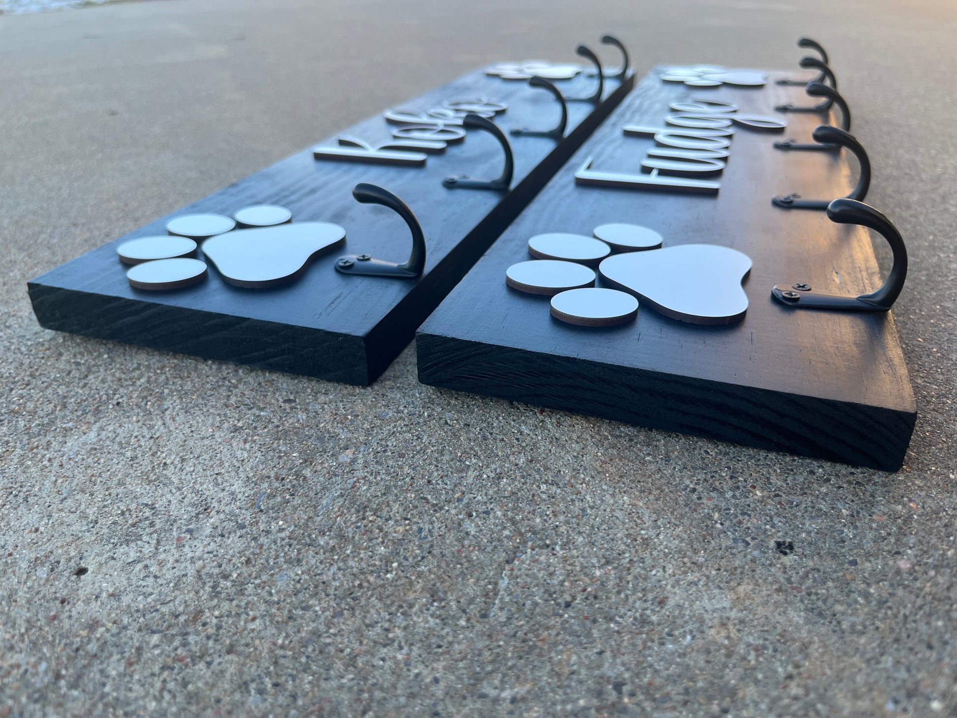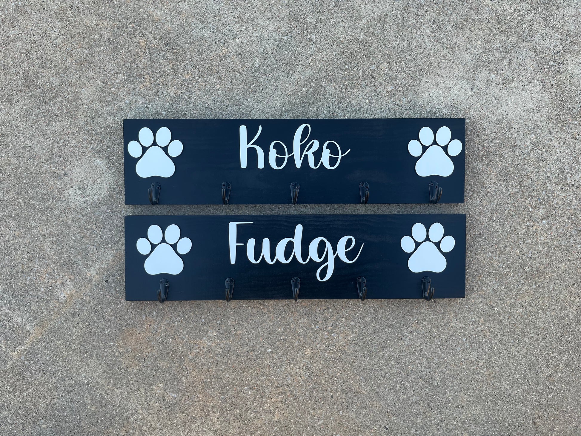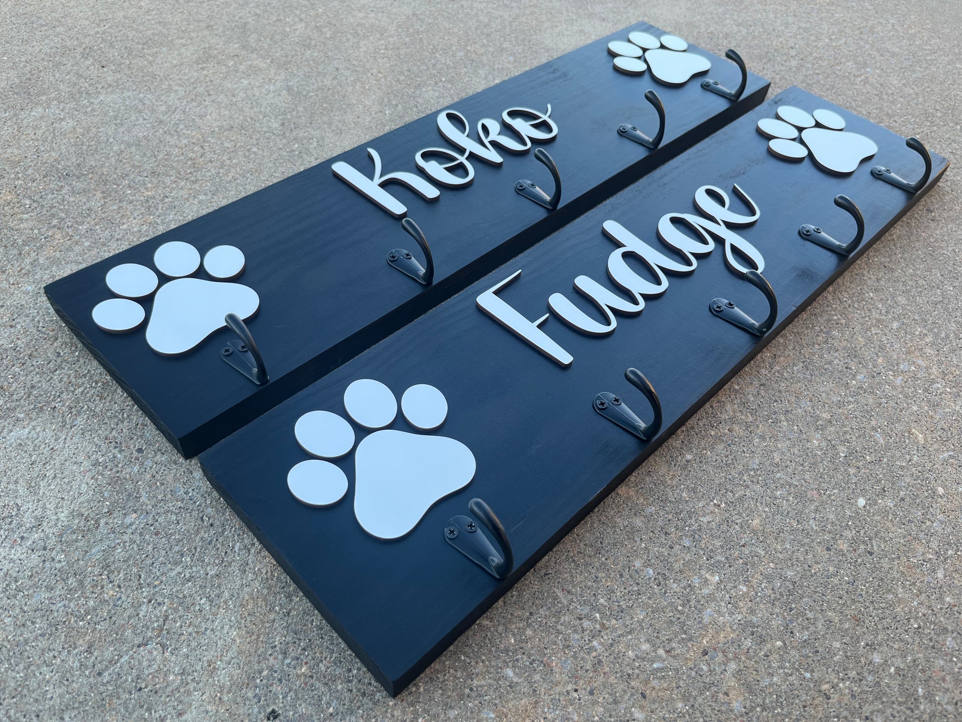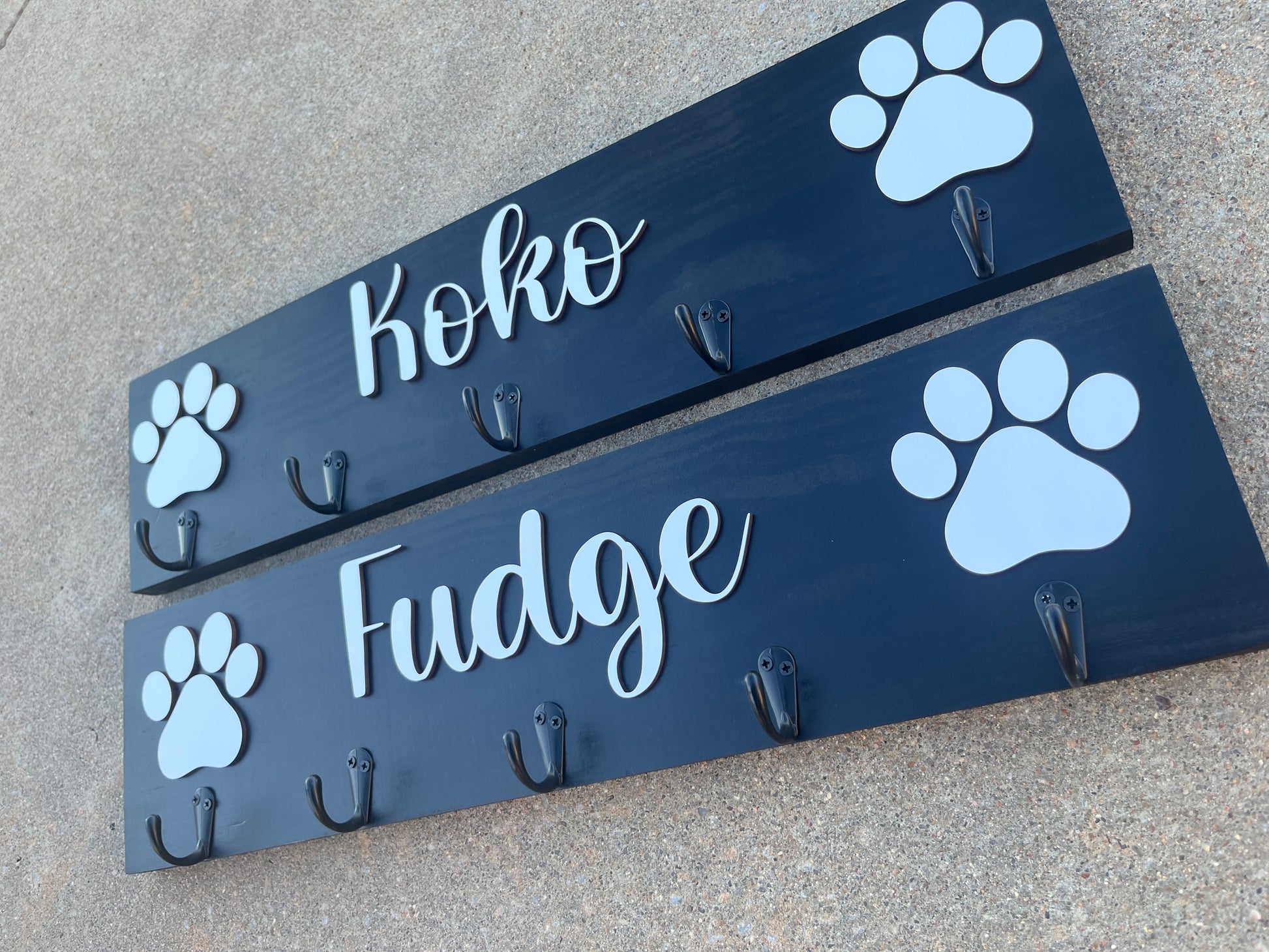 Organize your dog's leash with the Leash Hanger, featuring 3-5 hooks and personalized with your dog's name. Keep your home tidy and save time searching for leashes while showing off your pet's name. Expertly crafted to provide convenience and style for any dog owner.