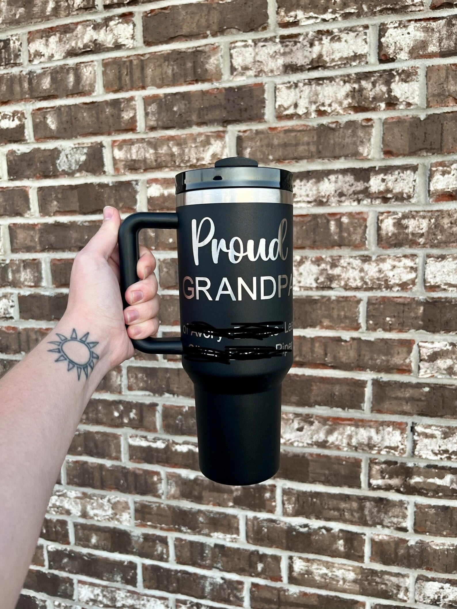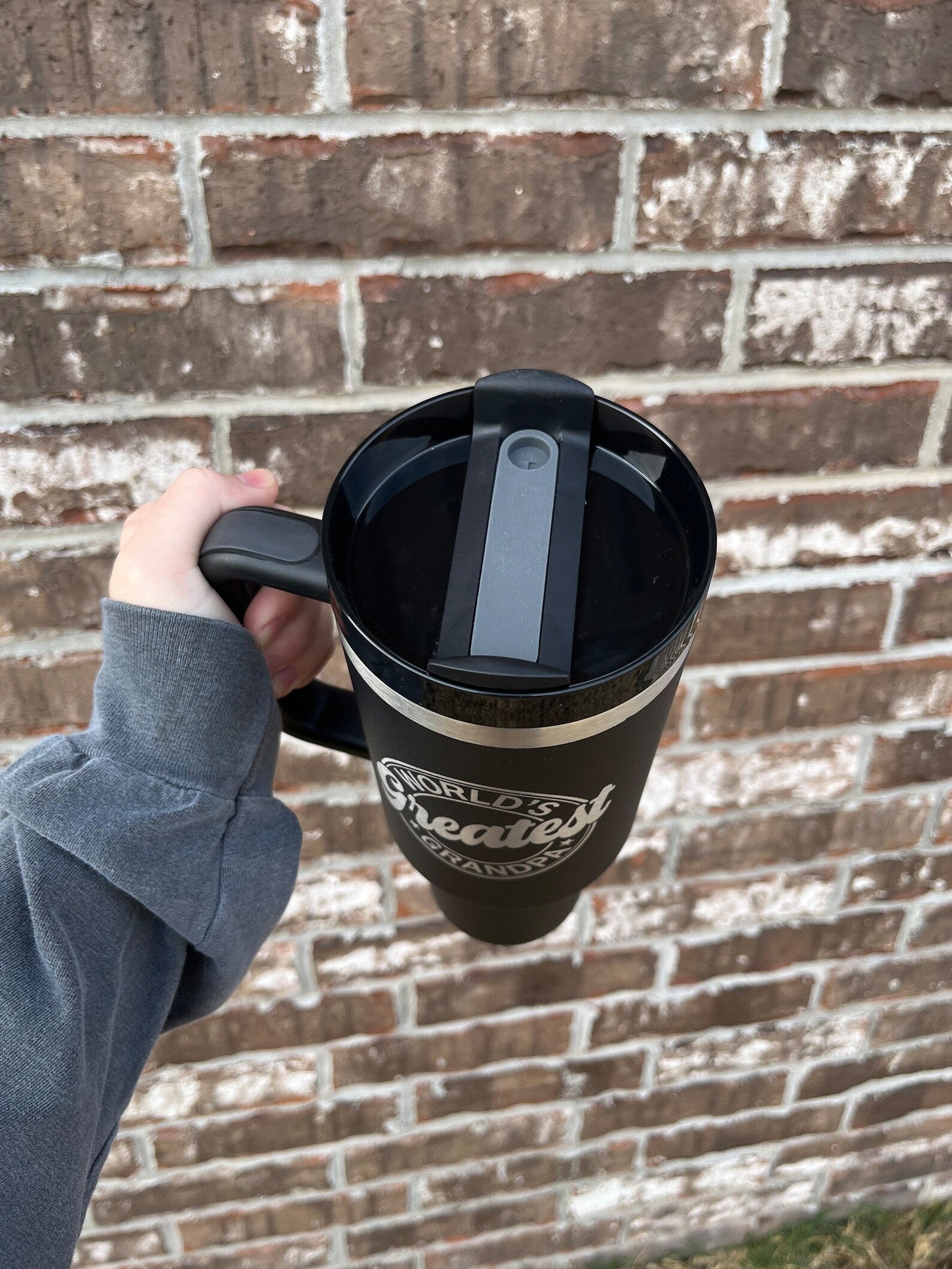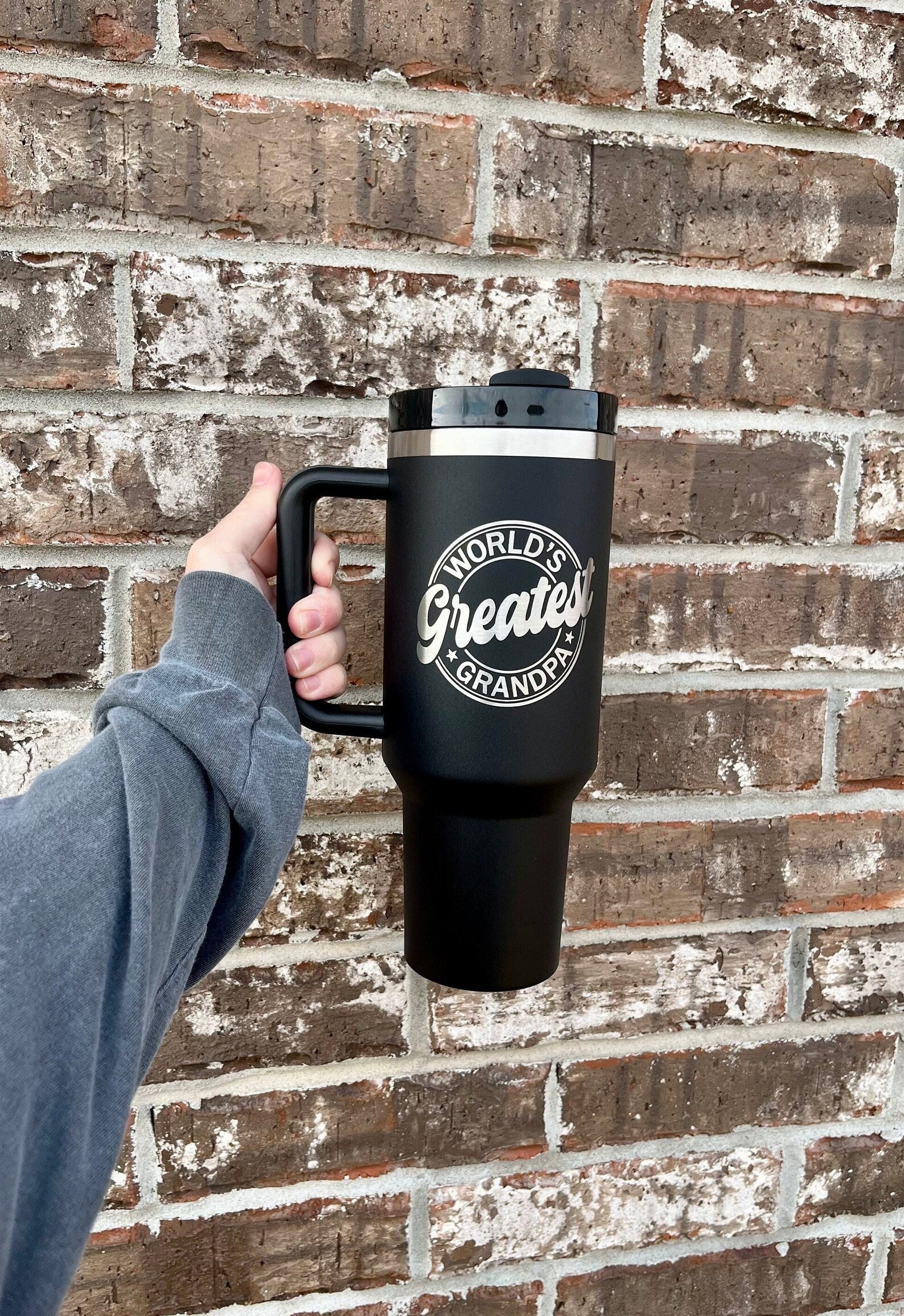 This Personalized Tumbler with Handle is a perfect gift for your beloved Grandpa, Dad, or any man in your life. It is a 40 Oz tumbler that will satisfy their daily hydration needs and keep their drinks at the right temperature.