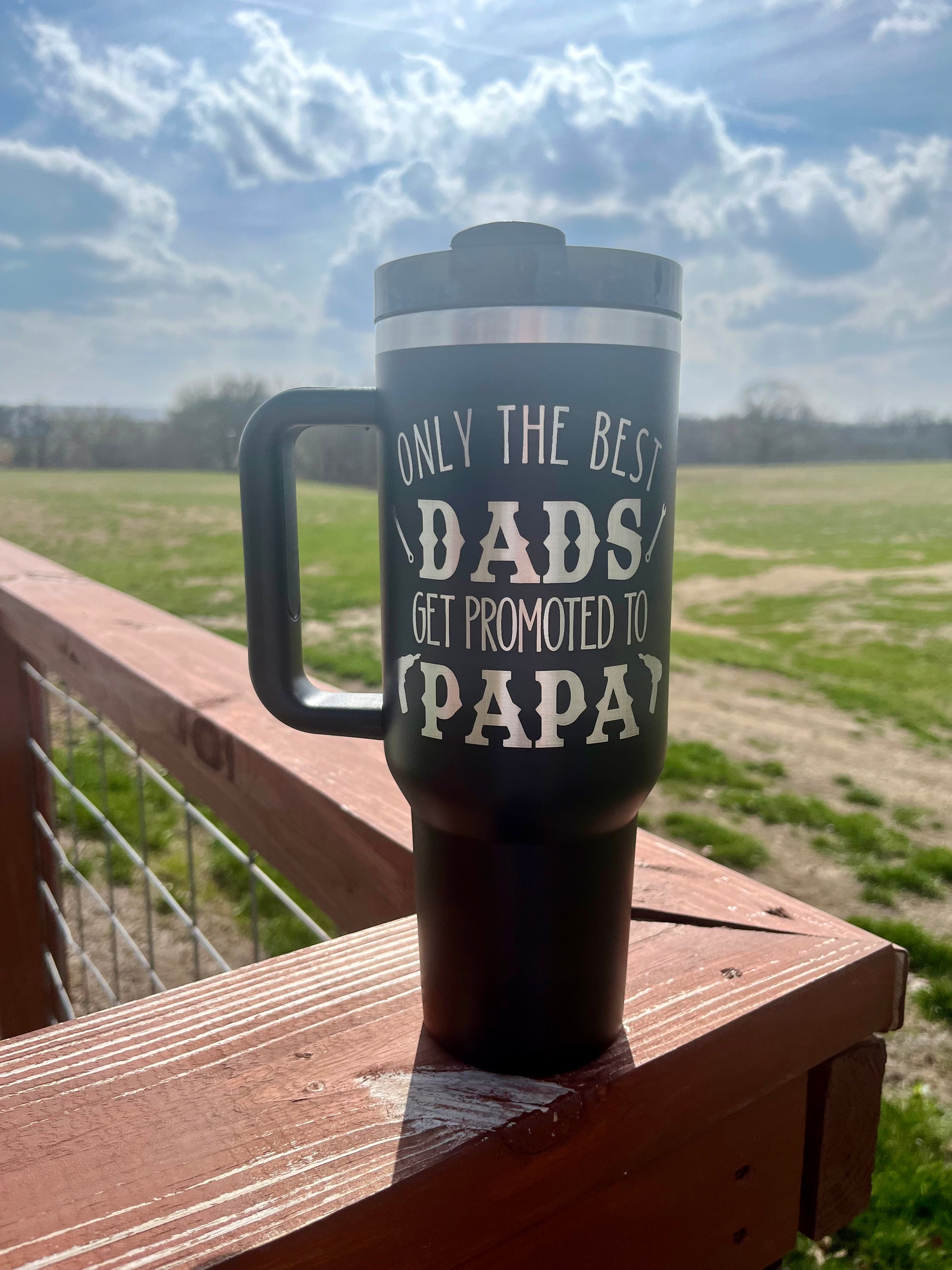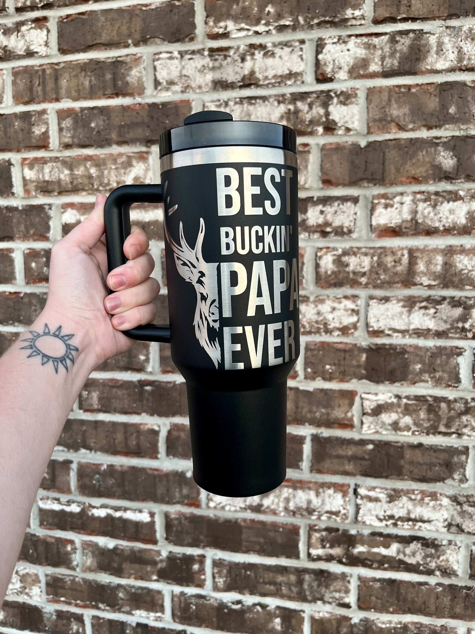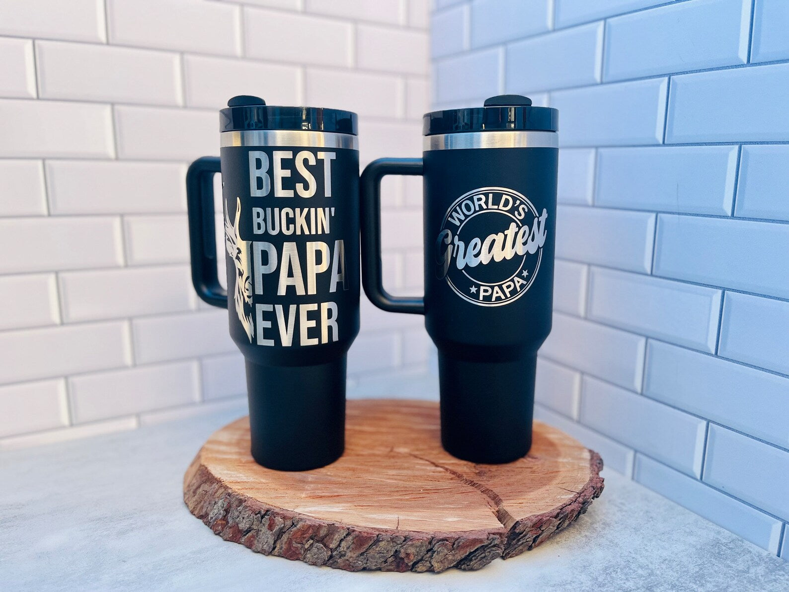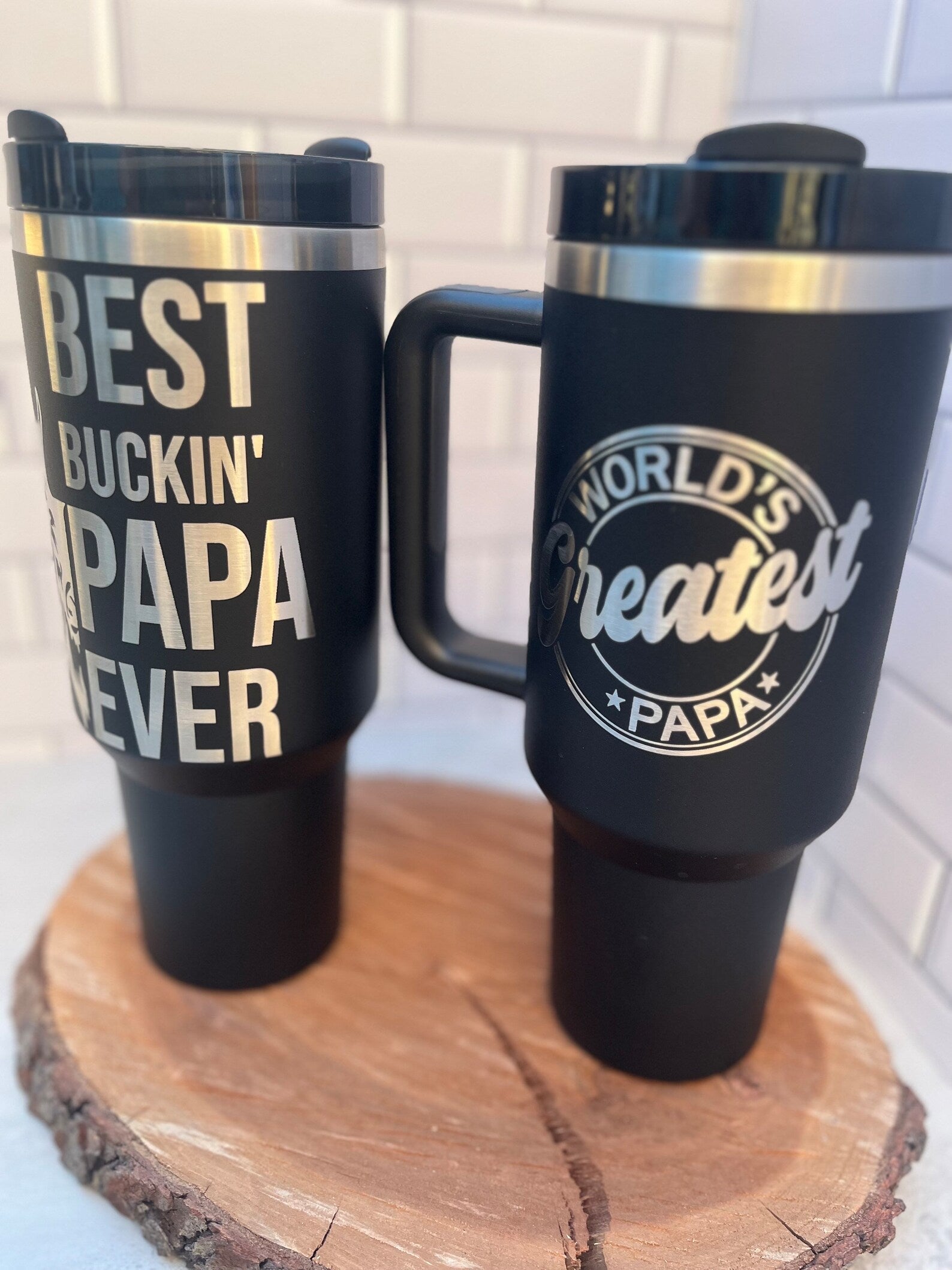 This Personalized Tumbler with Handle is a perfect gift for your beloved Grandpa, Dad, or any man in your life. It is a 40 Oz tumbler that will satisfy their daily hydration needs and keep their drinks at the right temperature.