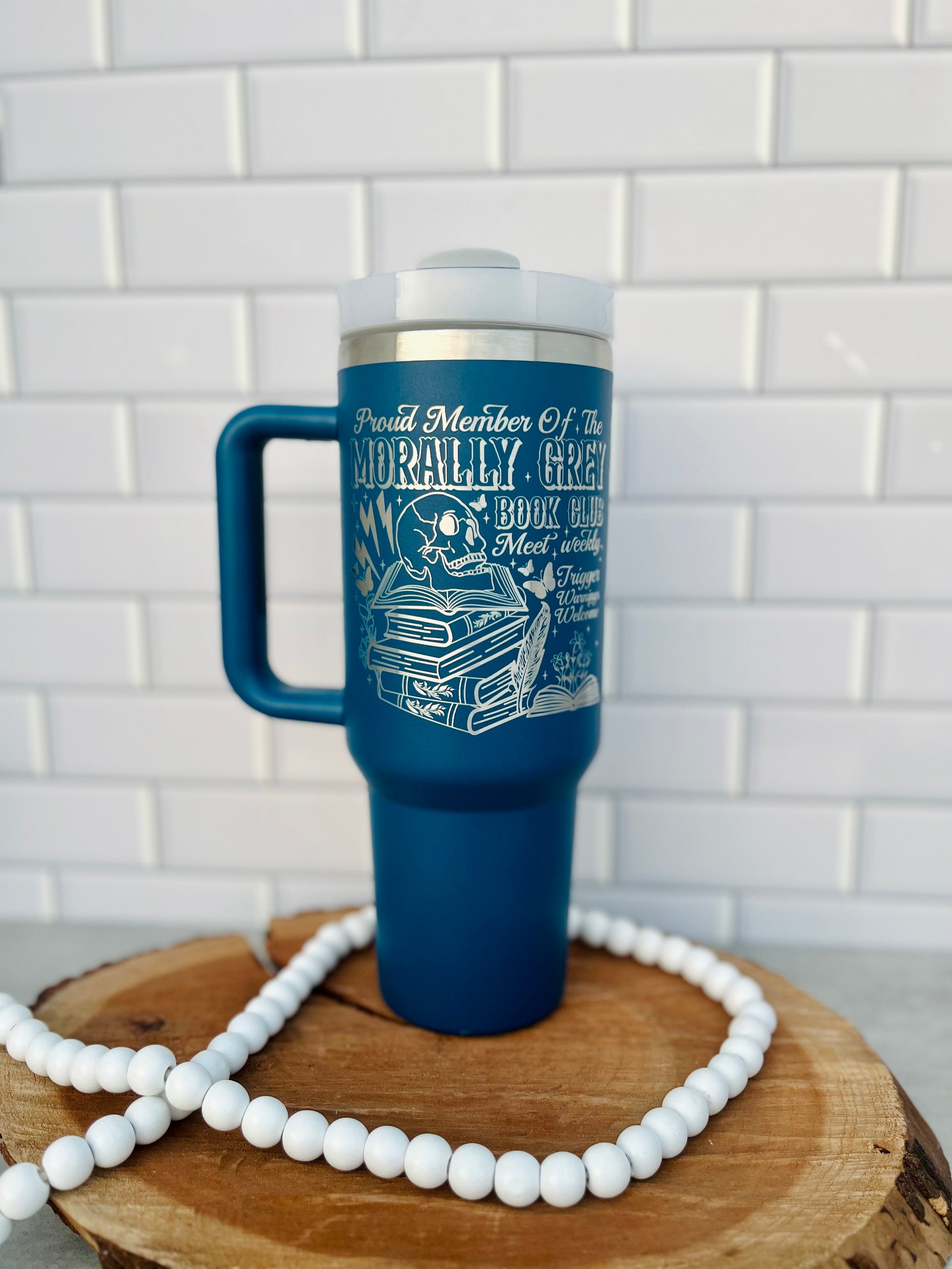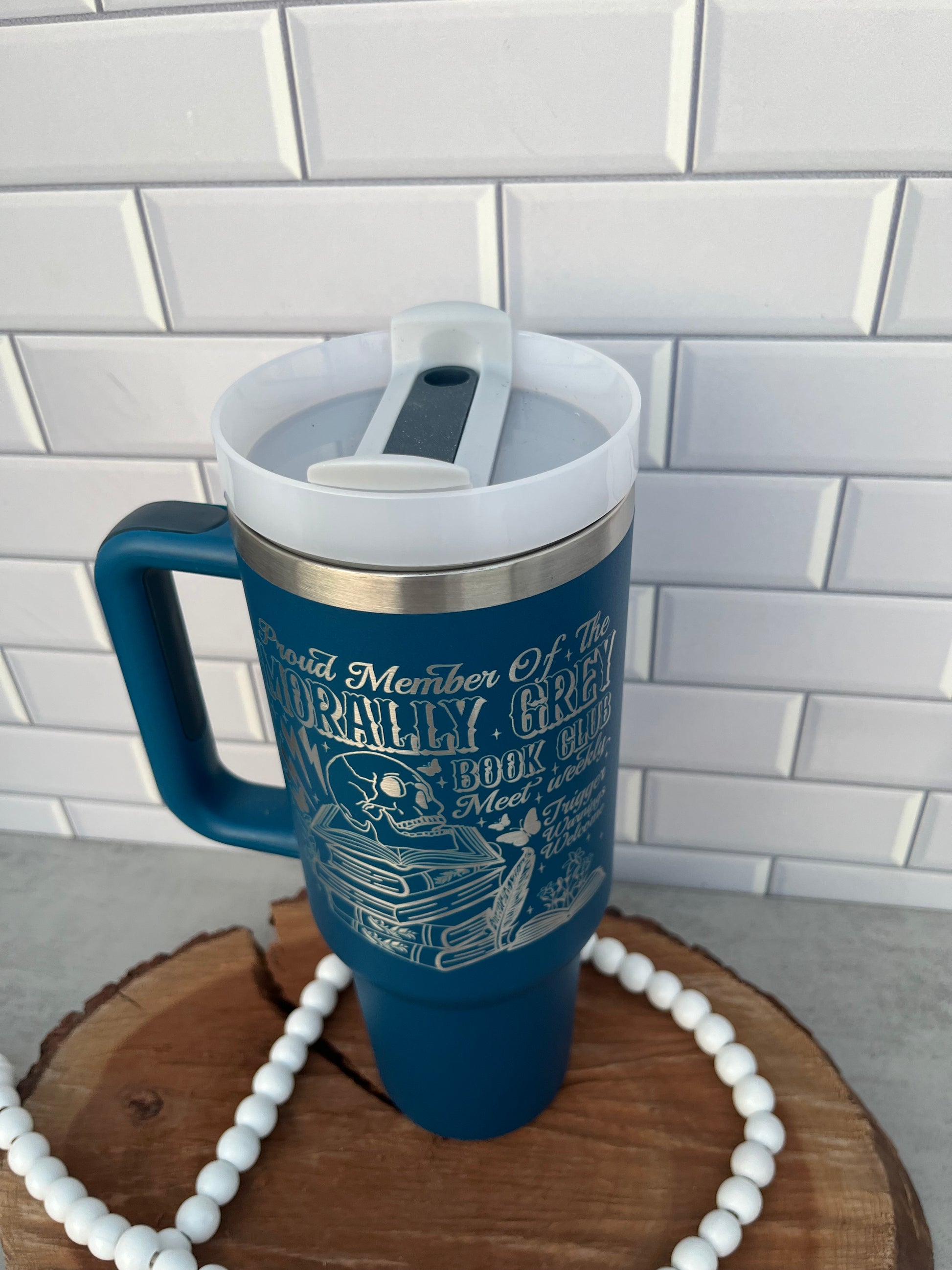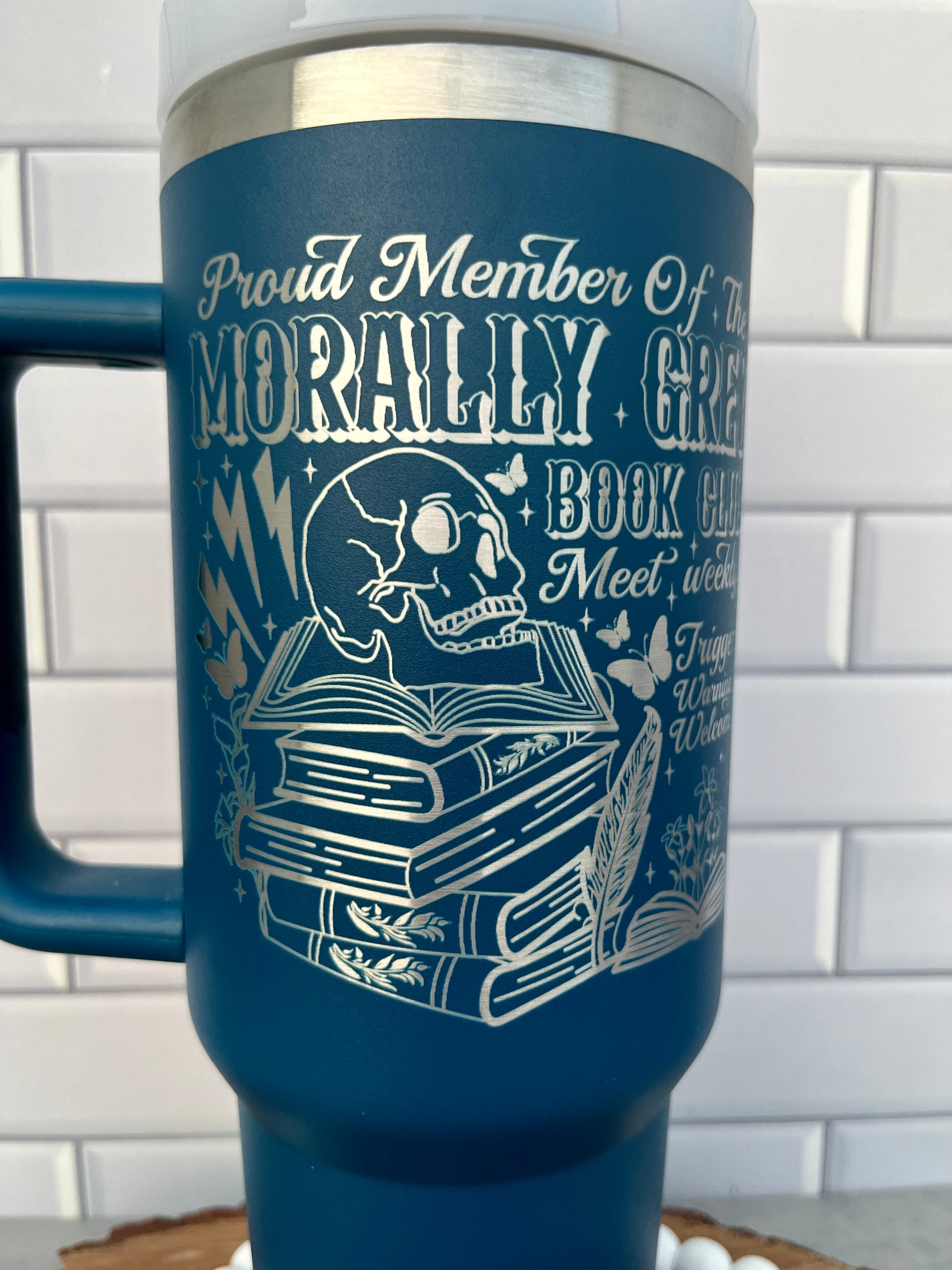 Discover your next read with the Morally Grey Book Club Tumbler. Perfect for book lovers and dark romance readers, this 40 oz tumbler makes a great gift for women. Indulge in your love for literature while staying hydrated on the go.