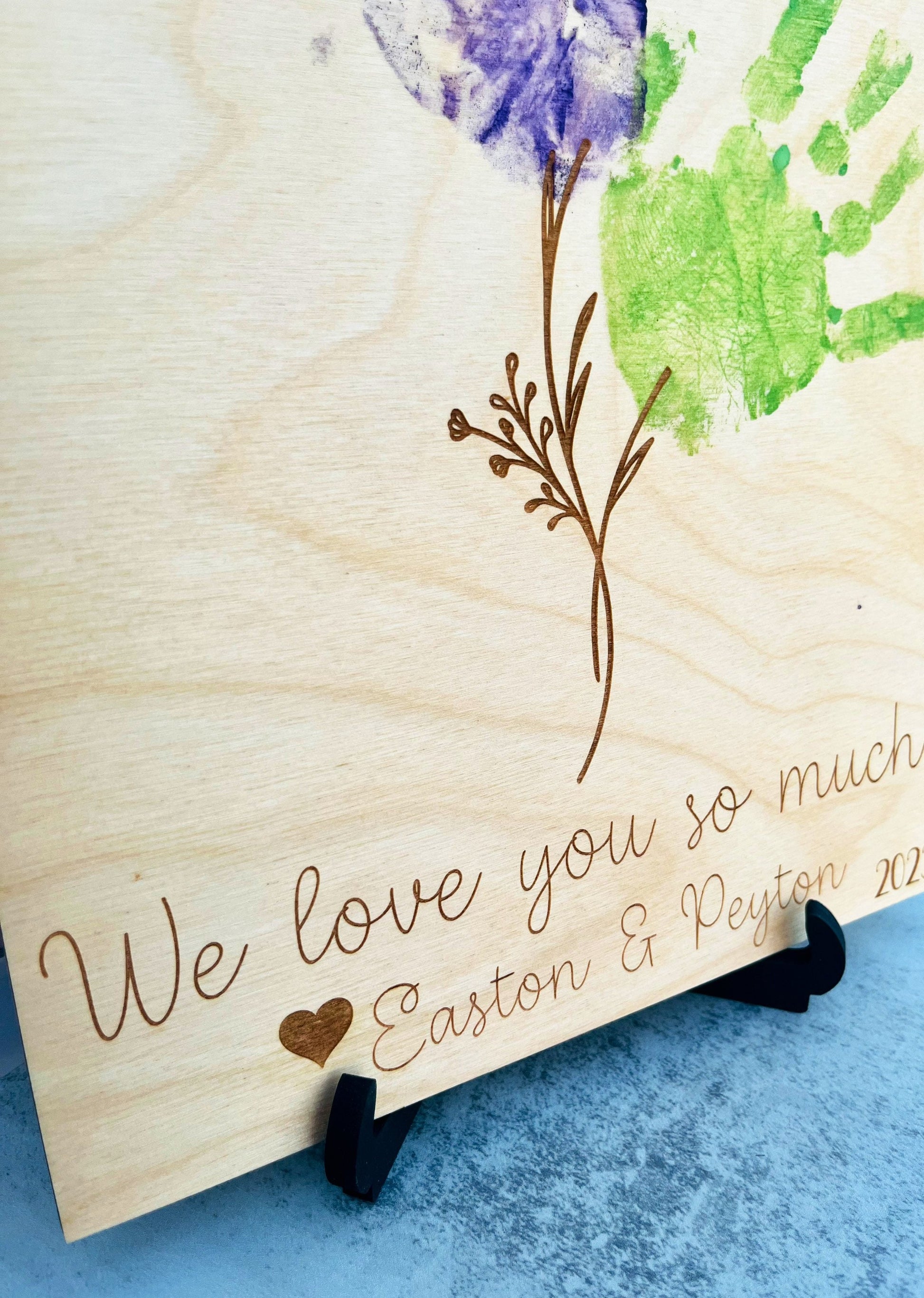 This sweet handprint flower sign is the perfect sentimental gift for mom or any grandparent! It is sure to be treasured for years to come.