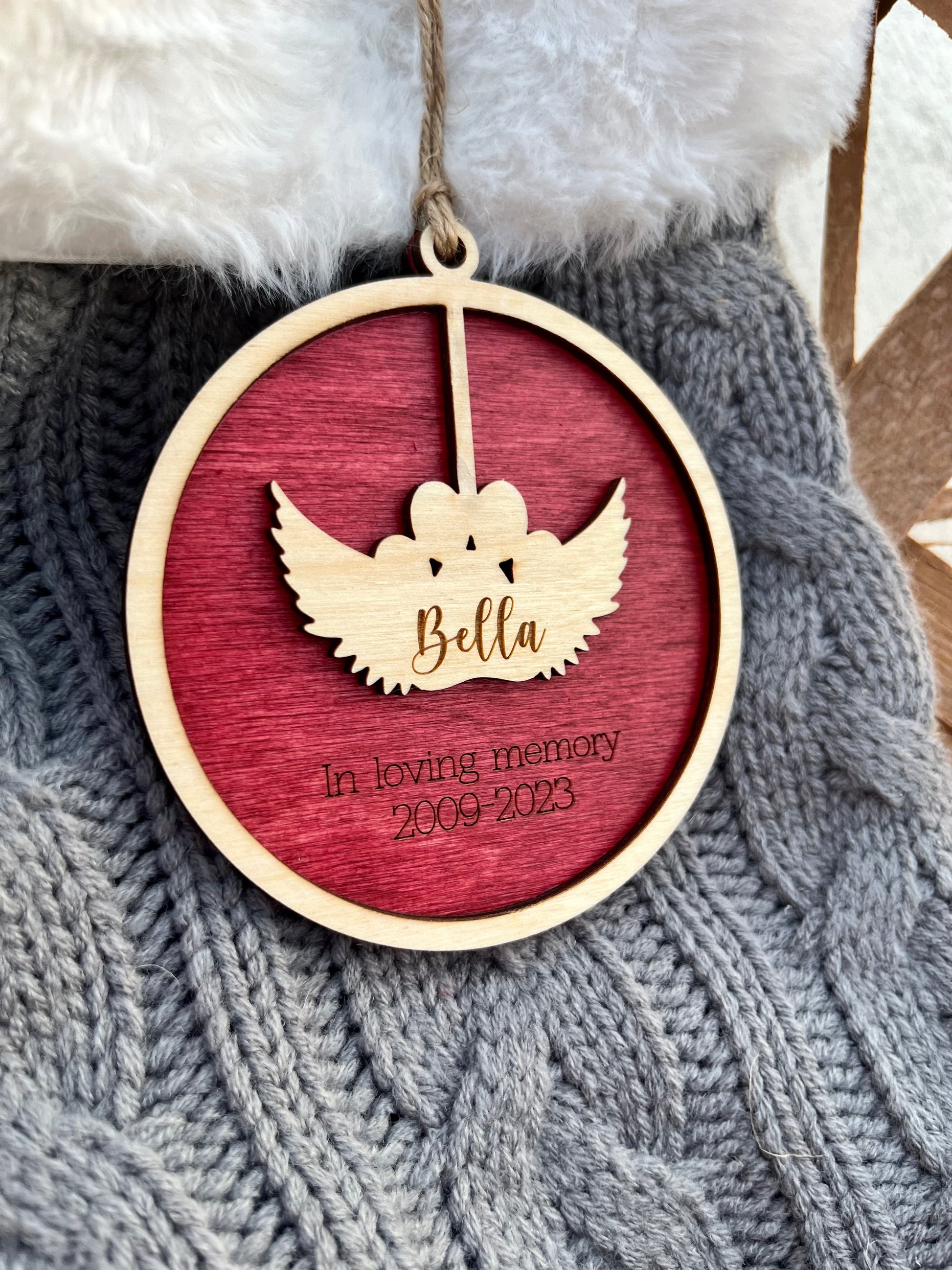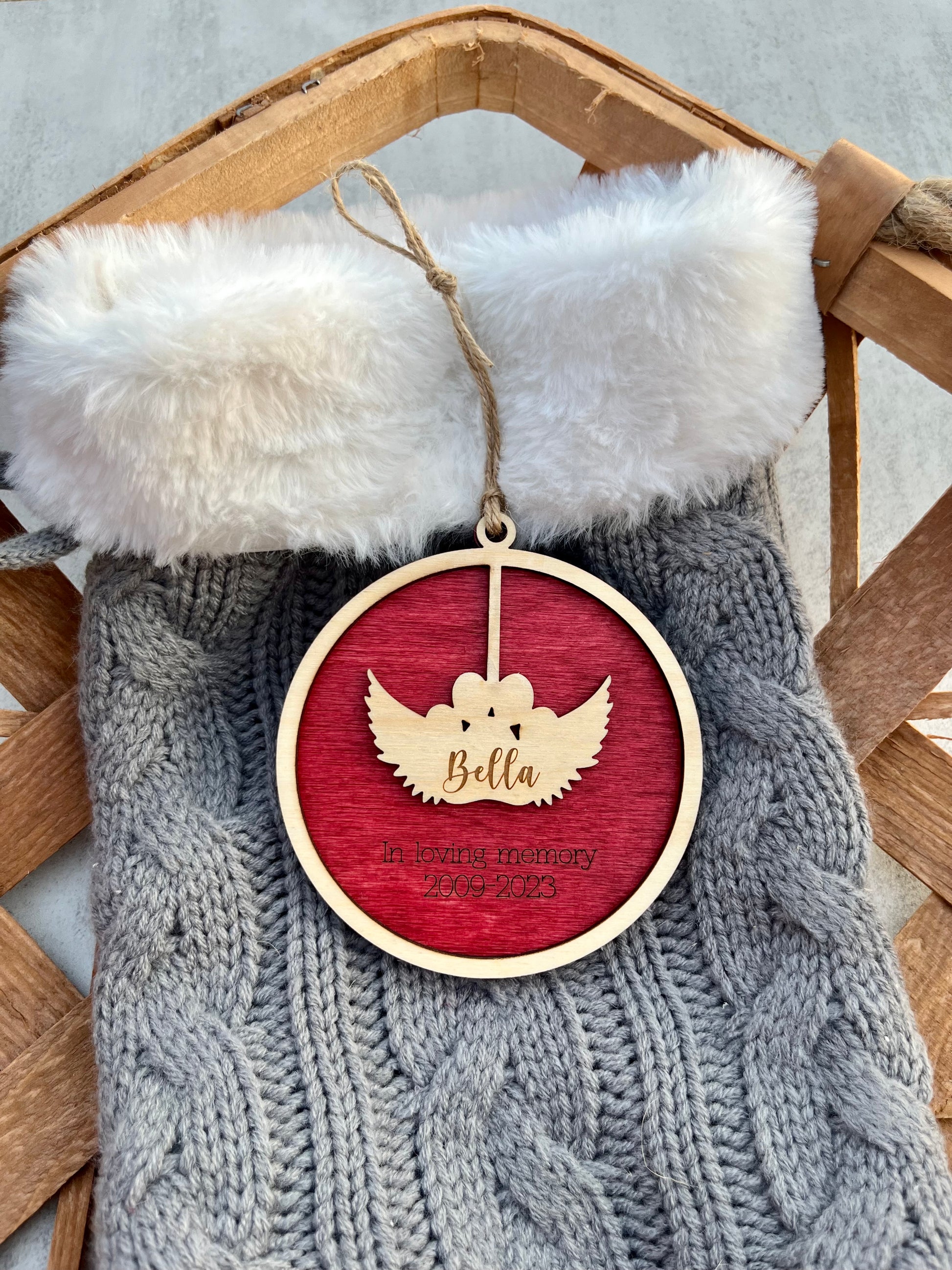 Honor and cherish the memory of your beloved pet with our personalized Pet Memorial Ornament. Keep their memory alive during the holidays or year-round with this beautiful ornament. A thoughtful and heartfelt way to remember your sweet dog or cat. This ornament is also the perfect gift to someone experiencing loss to remind them you care.